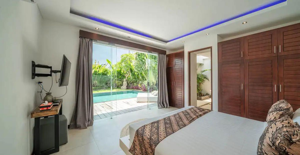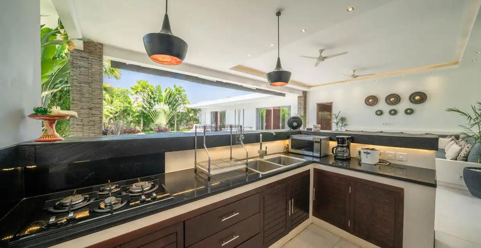 This Villa have all three bedrooms that are tastefully crafted with wooden interior and are equipped with air conditioning, writing desks and adjoining outdoor bathrooms with rain showers.